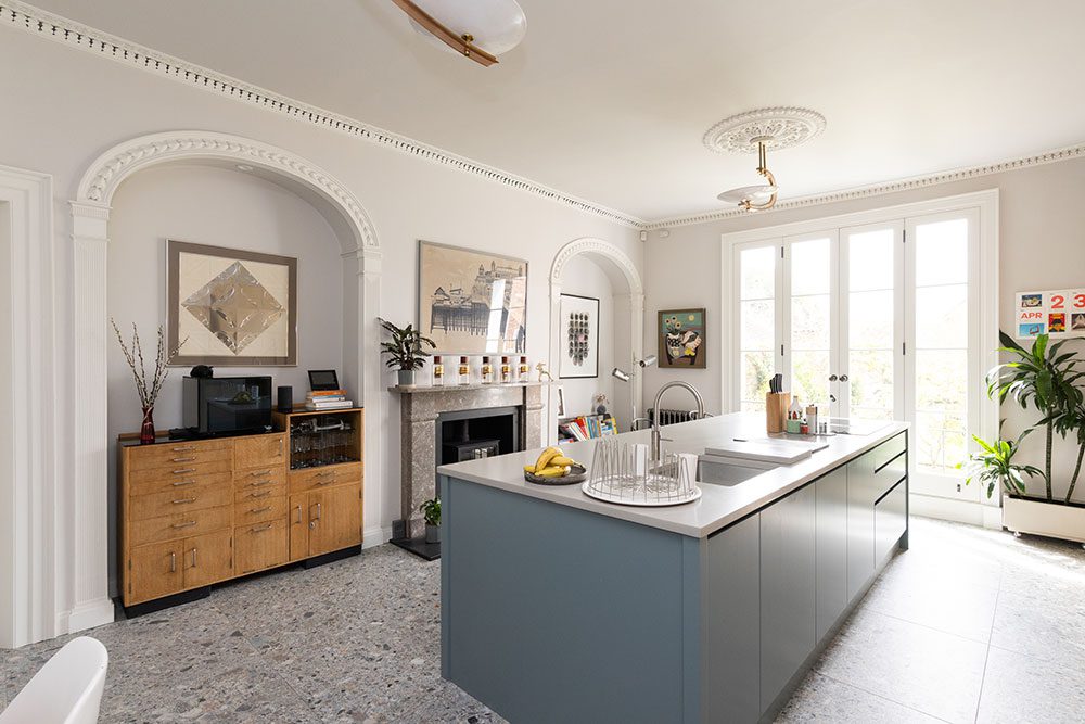 The ground floor houses the kitchen, dining room, music room and office, with a grand staircase up to the large sitting room, lounge and several bedrooms off the 1st floor. All rooms are exceptionally light and spacious.